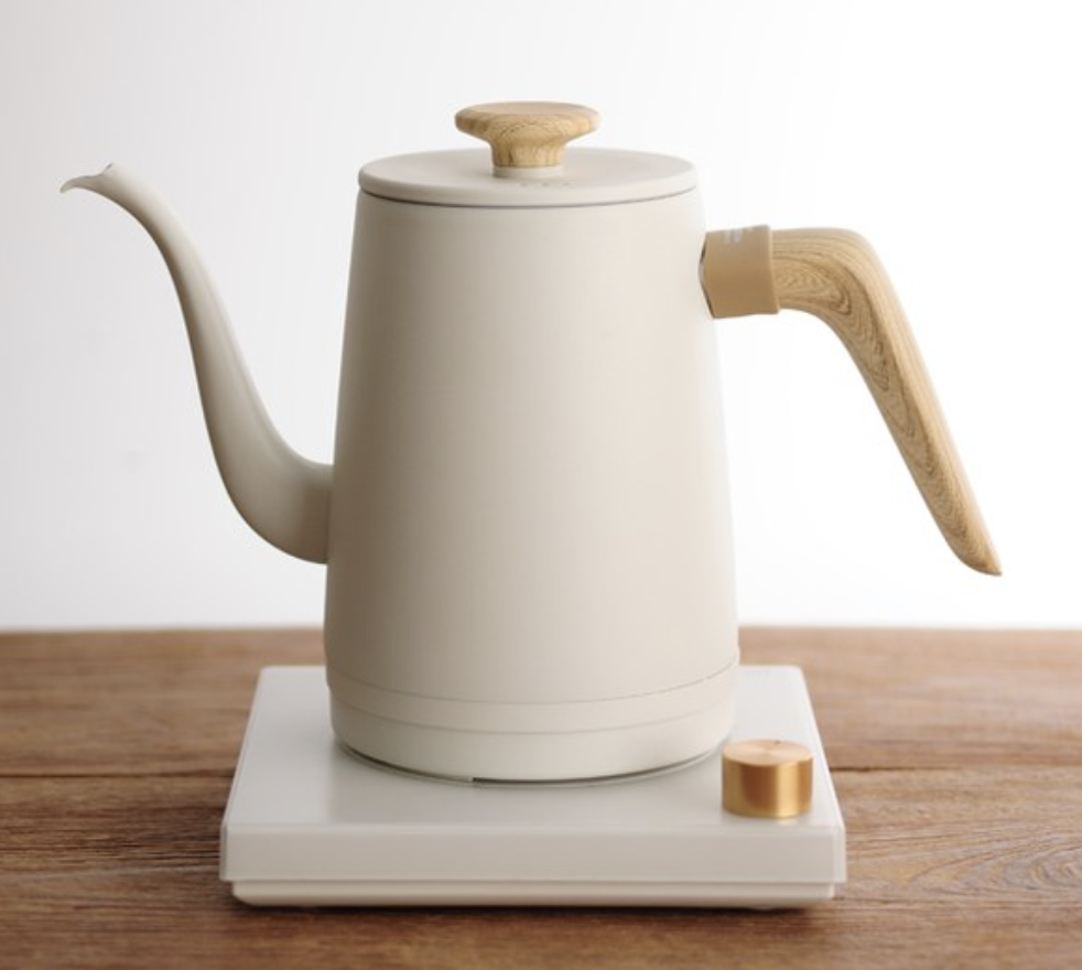 주둥이 형태는 일반적인 드립포트보다 구멍이 크지만 끝의 형태를 핸드드립에 최적화해서 제작